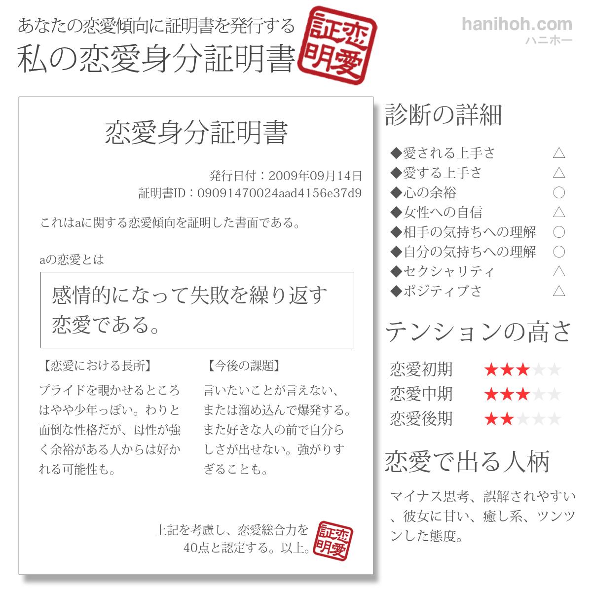 あなたの性格や恋愛観を徹底分析して、成績をつける!シンプルなコンセプトです。診断をした二人の相性を見ることも可能。