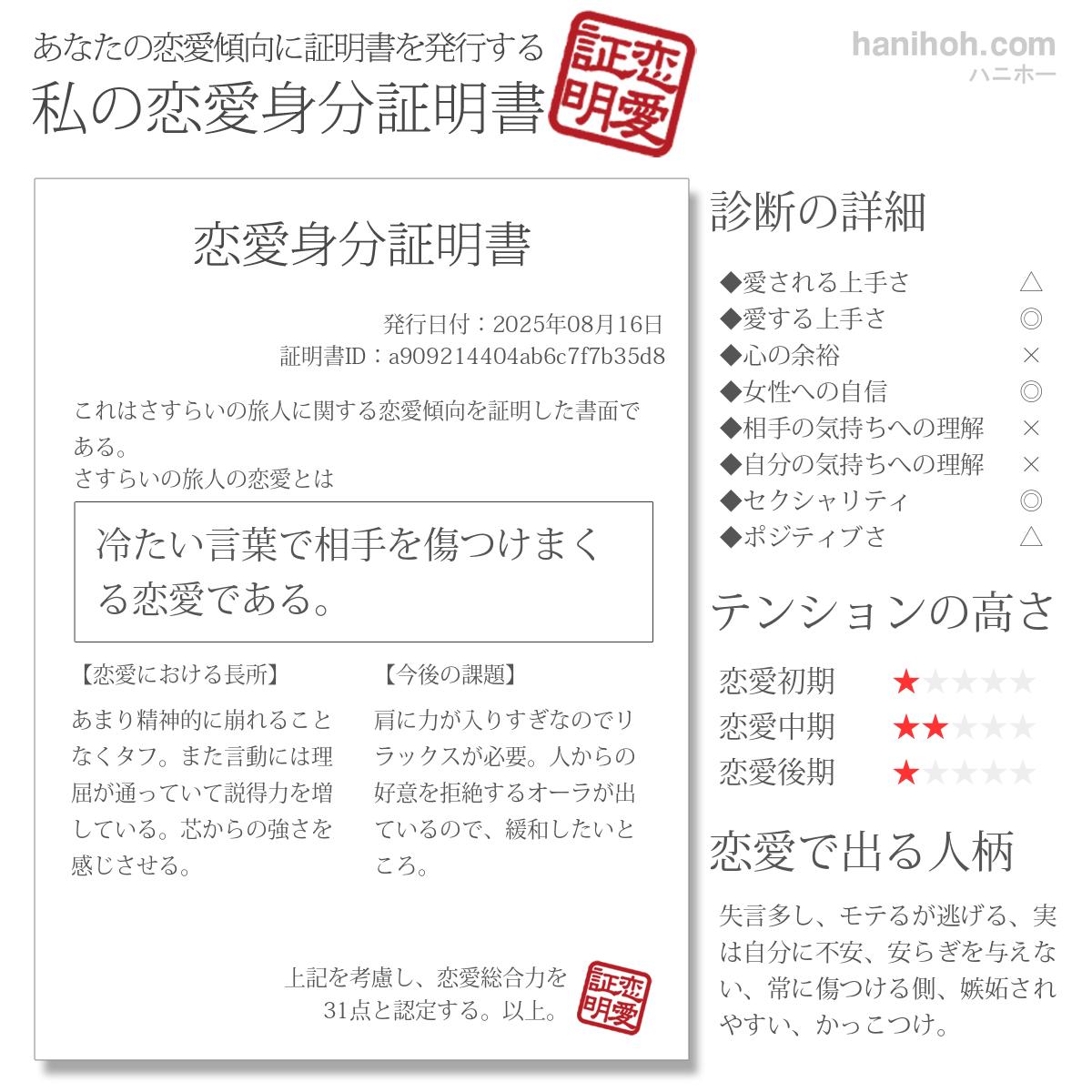 このような隅のほうまで興味を持っていただいたことに感謝します。ハニホーがどれほどのことを考えて診断しているかを理解するには、開設された「人生屋さん」をご覧ください。恋愛や性格の深~い世界が垣間見られますよ。