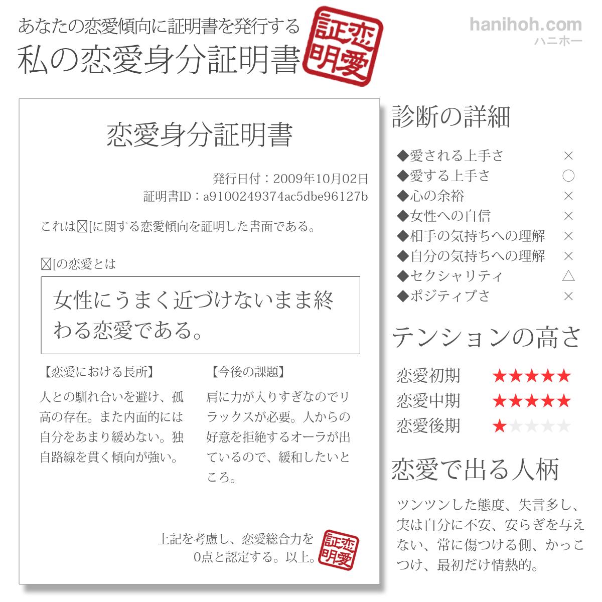 このたび、モテ免許証の発行を受けることが、全国民に義務付けられました。ということで、モテに免許証を発行する、新手の恋愛診断です。